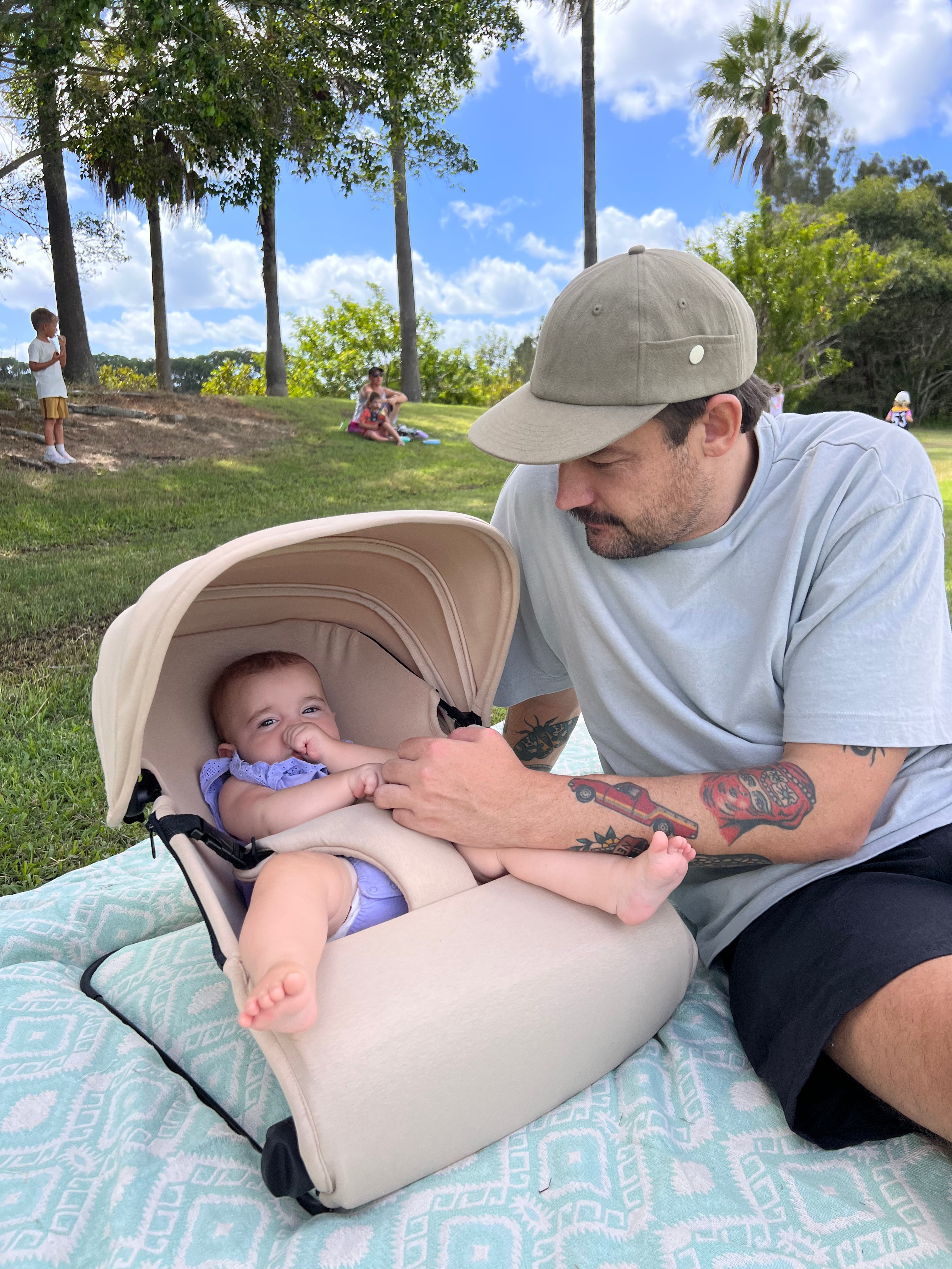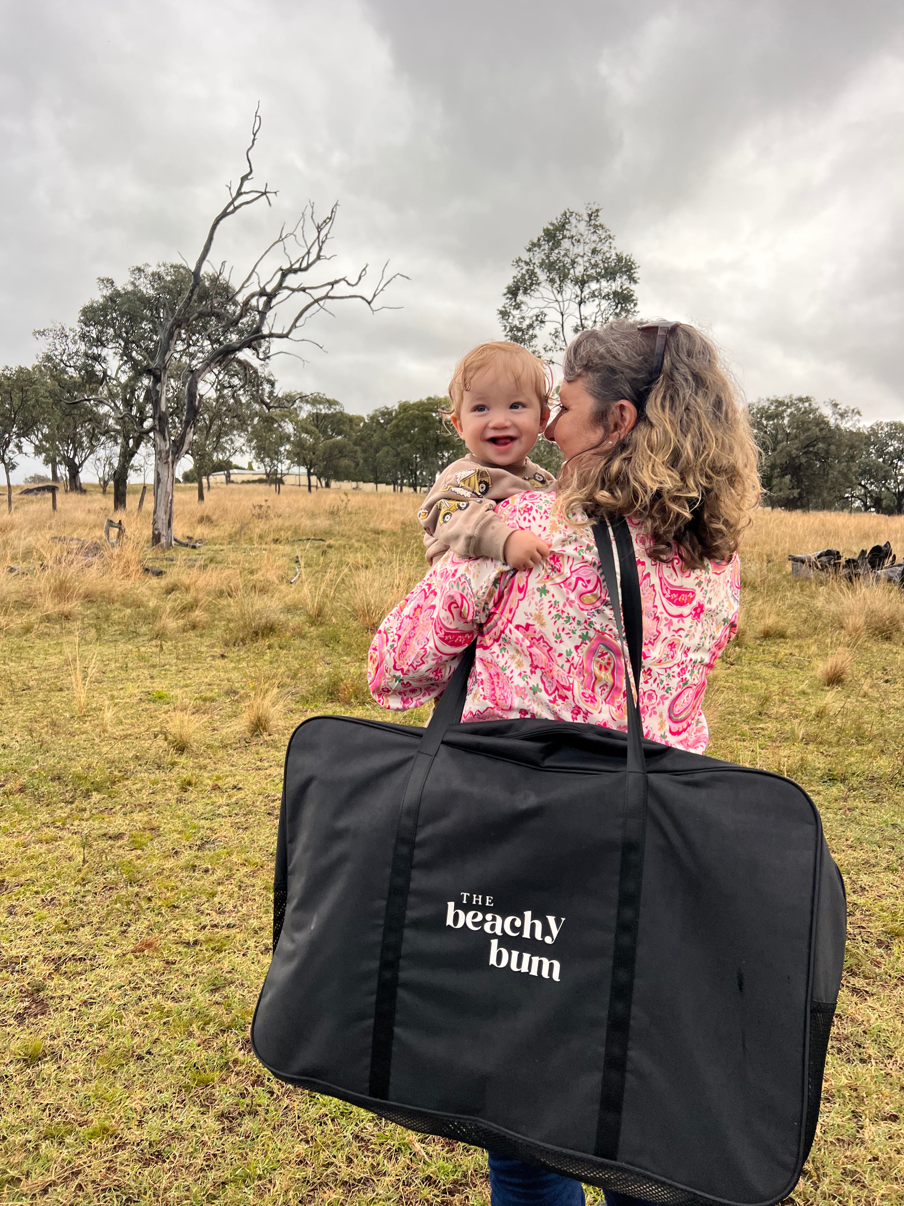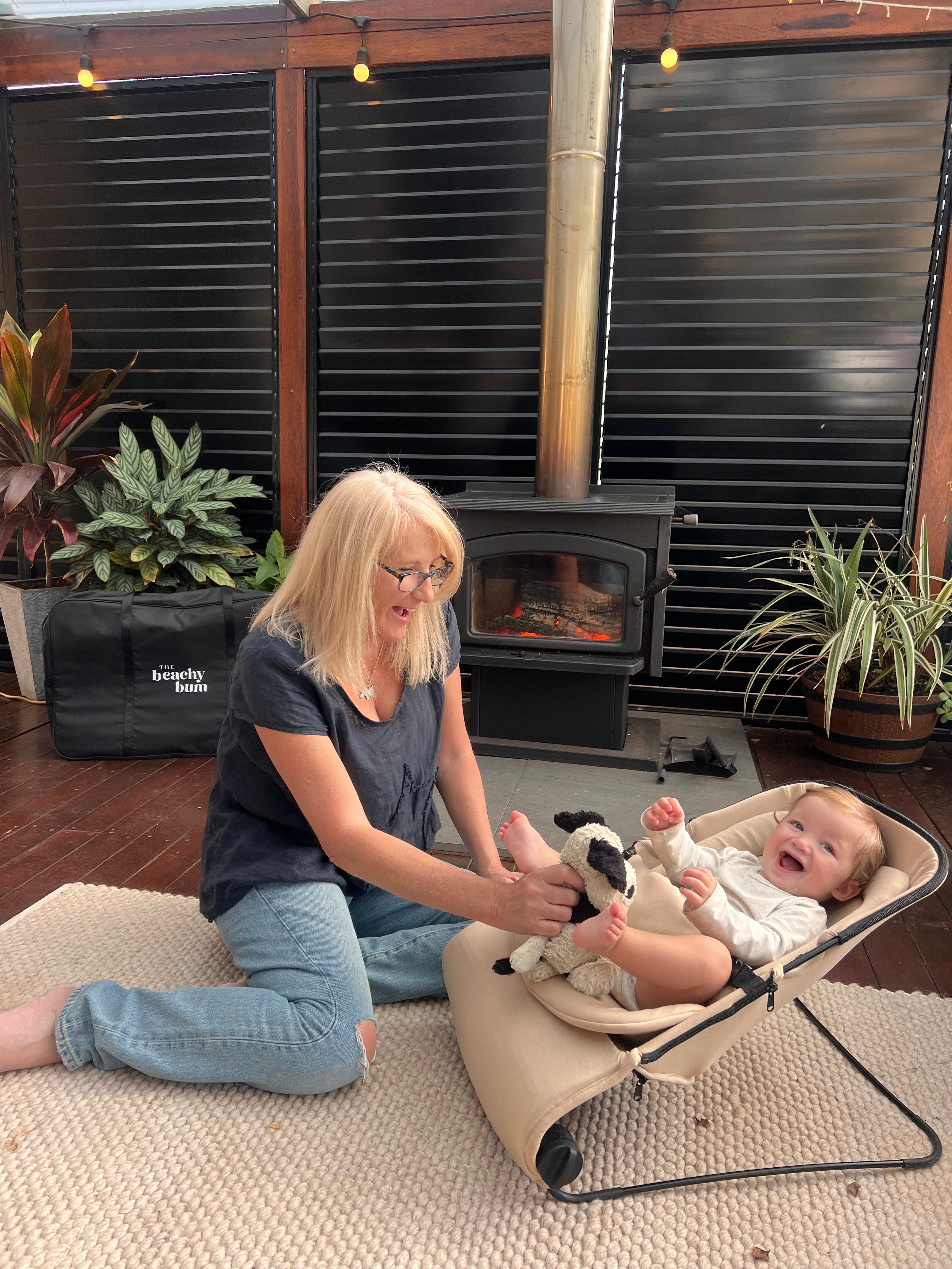 The Beachy Bum Bouncer is lightweight, foldable, and built for easy use anywhere you go. It features breathable mesh for airflow, a UV-rated sunhood for sun protection, and a secure design that meets Australian/New Zealand safety standard AS/NZS 2195.
